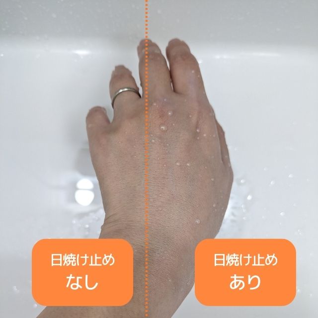 石けんでどのくらい落ちるか試してみたところ、まぁまぁ落としやすい日焼け止めでした。