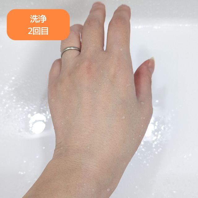 2回目も洗ってみたところ水を弾いている感じはなくなりましたが、肌は少し油分が残っている感じがしました。