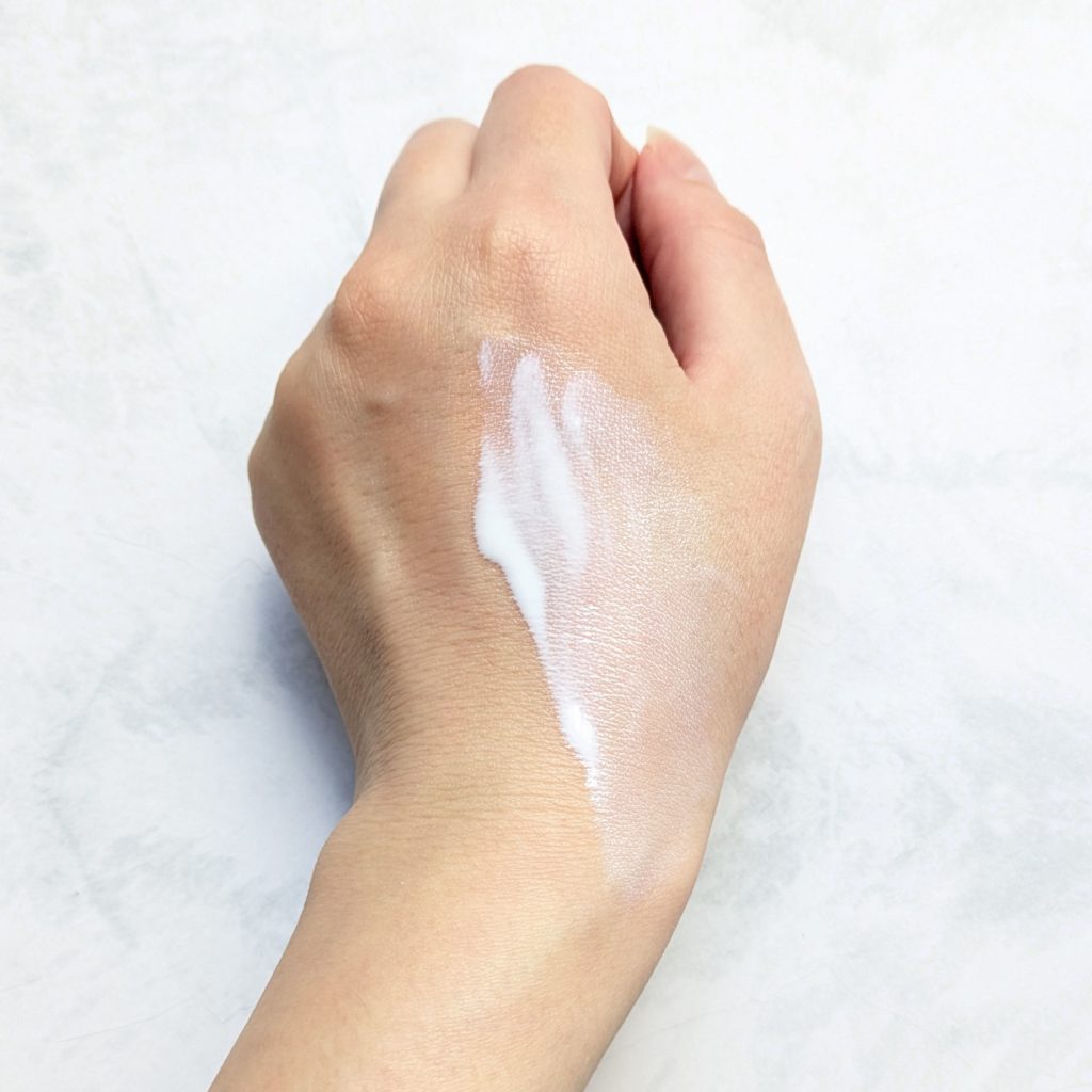 顔に塗ってみてトーンアップとか毛穴をカバーするとかは全くないですが、塗り拡げやすくてベタつく感じも少ない。